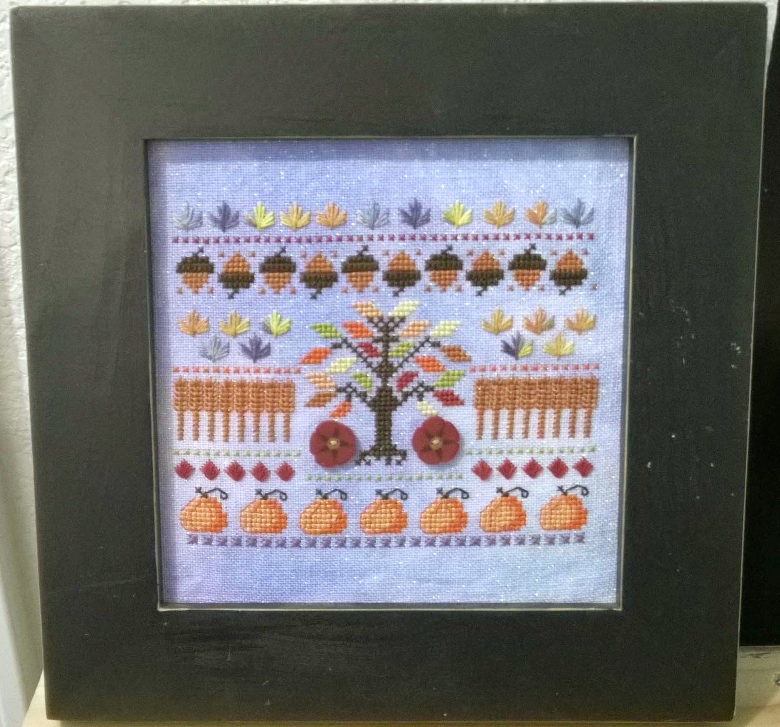 I was finally able to frame Autumn Harvest that I completed at the beginning of the year. I also finished Pumpkin Sampler and framed it today. I think they look rather nice.